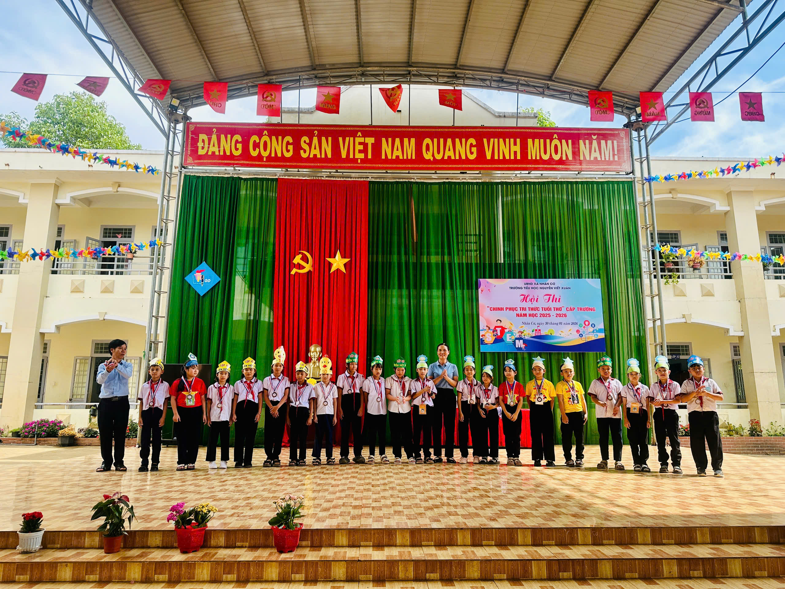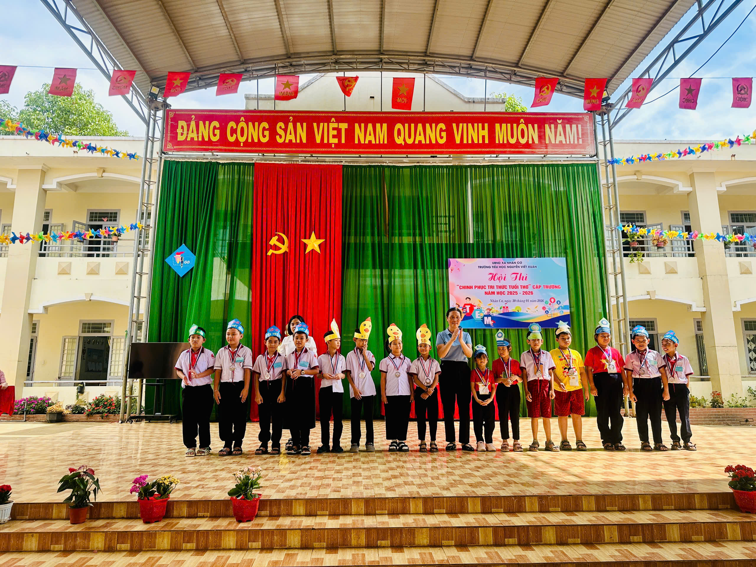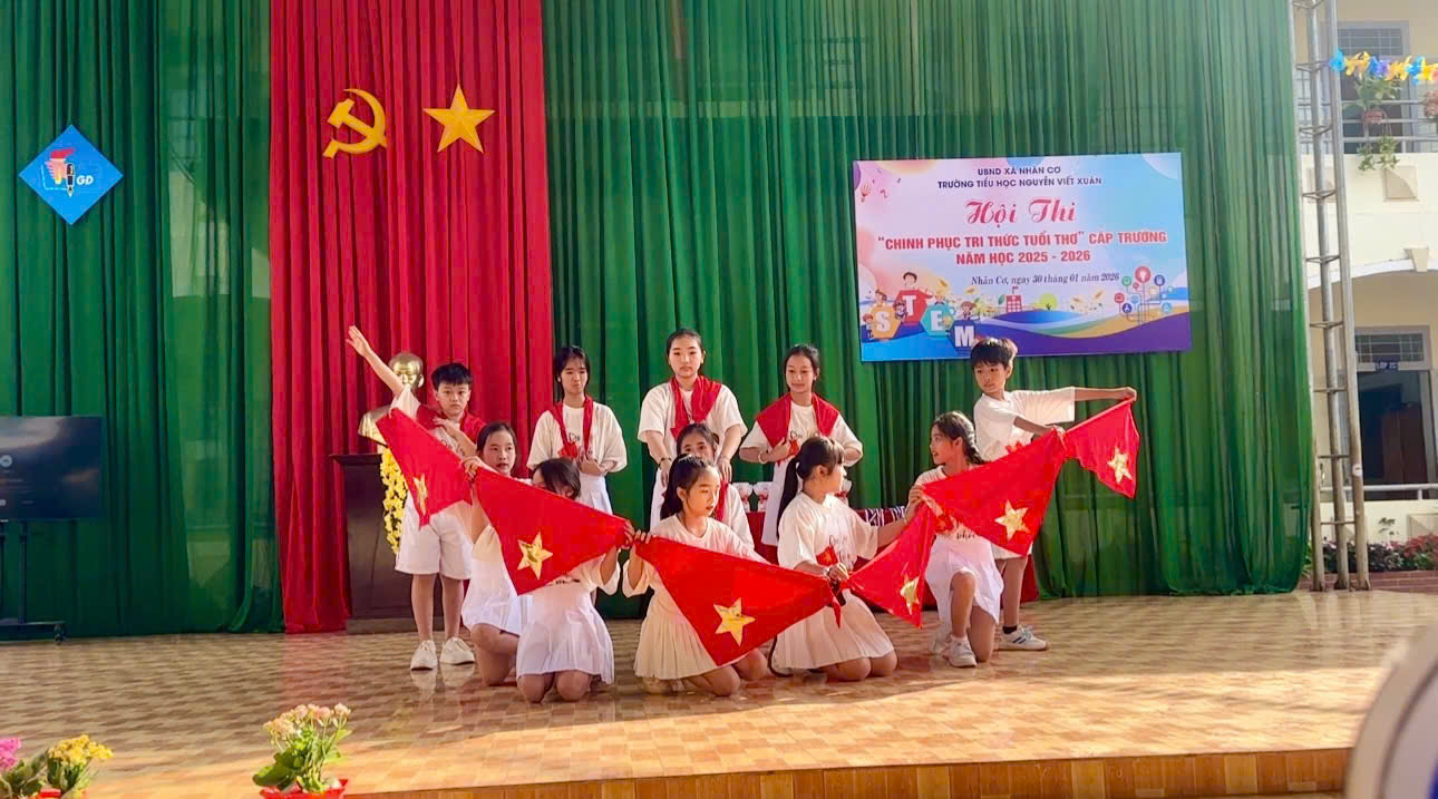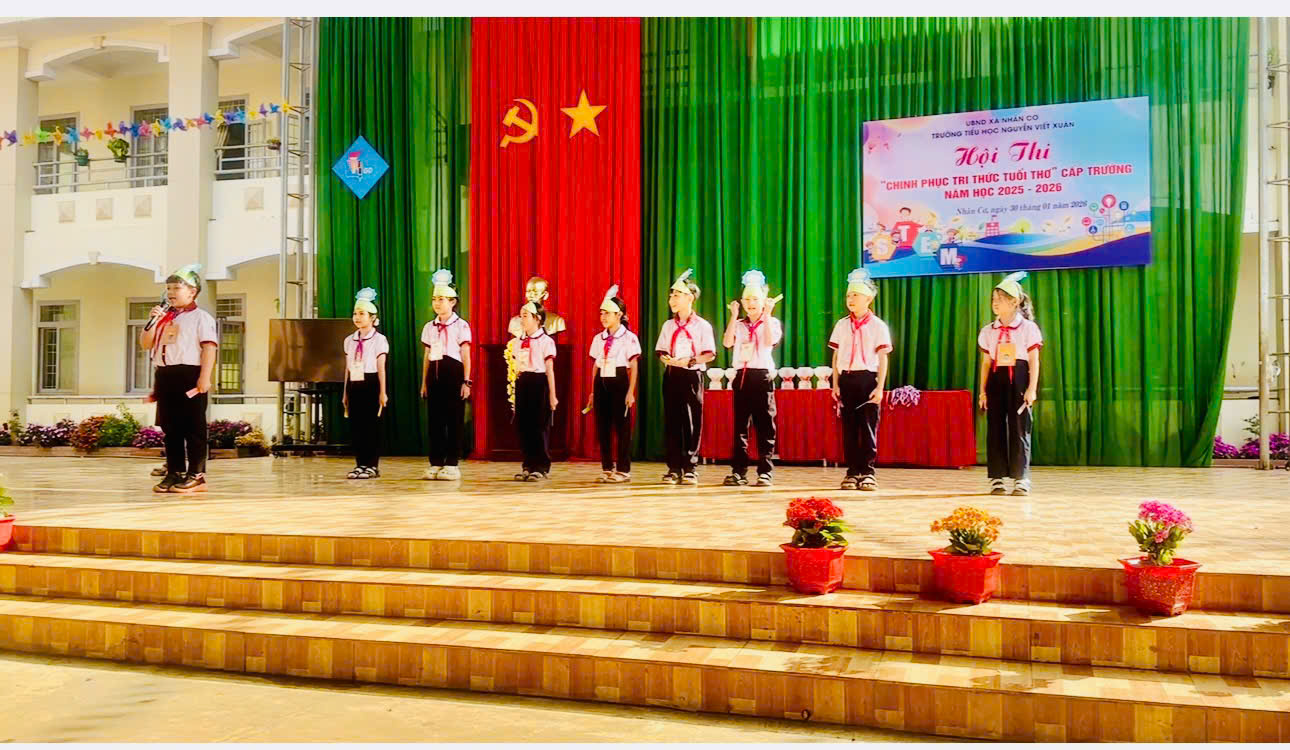 Sáng ngày 30/01/2026, tại Trường Tiểu học Nguyễn Viết Xuân, xã Nhân Cơ, tỉnh Lâm Đồng, Hội thi “Chinh phục tri thức tuổi thơ” năm học 2025 – 2026 đã diễn ra trong không khí vui tươi, hào hứng và đầy trí tuệ. Hội thi thu hút sự quan tâm của giáo viên, phụ huynh và đặc biệt là sự tham gia nhiệt tình của các em học sinh.