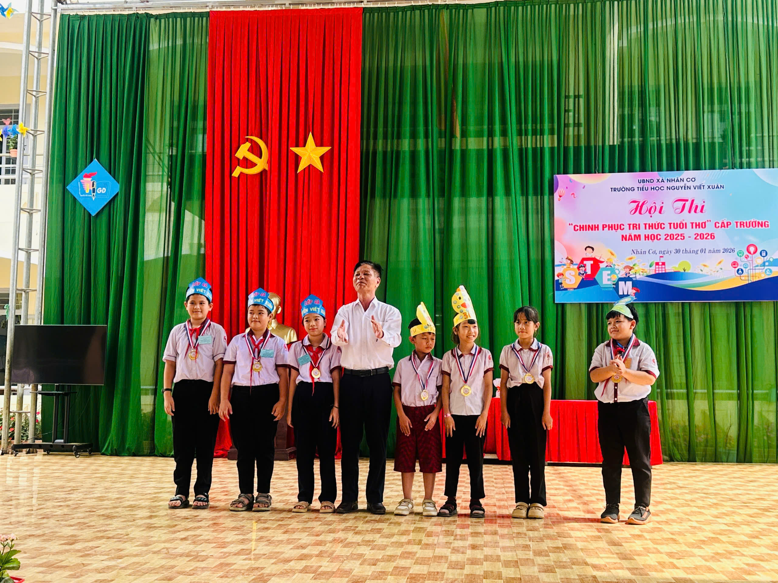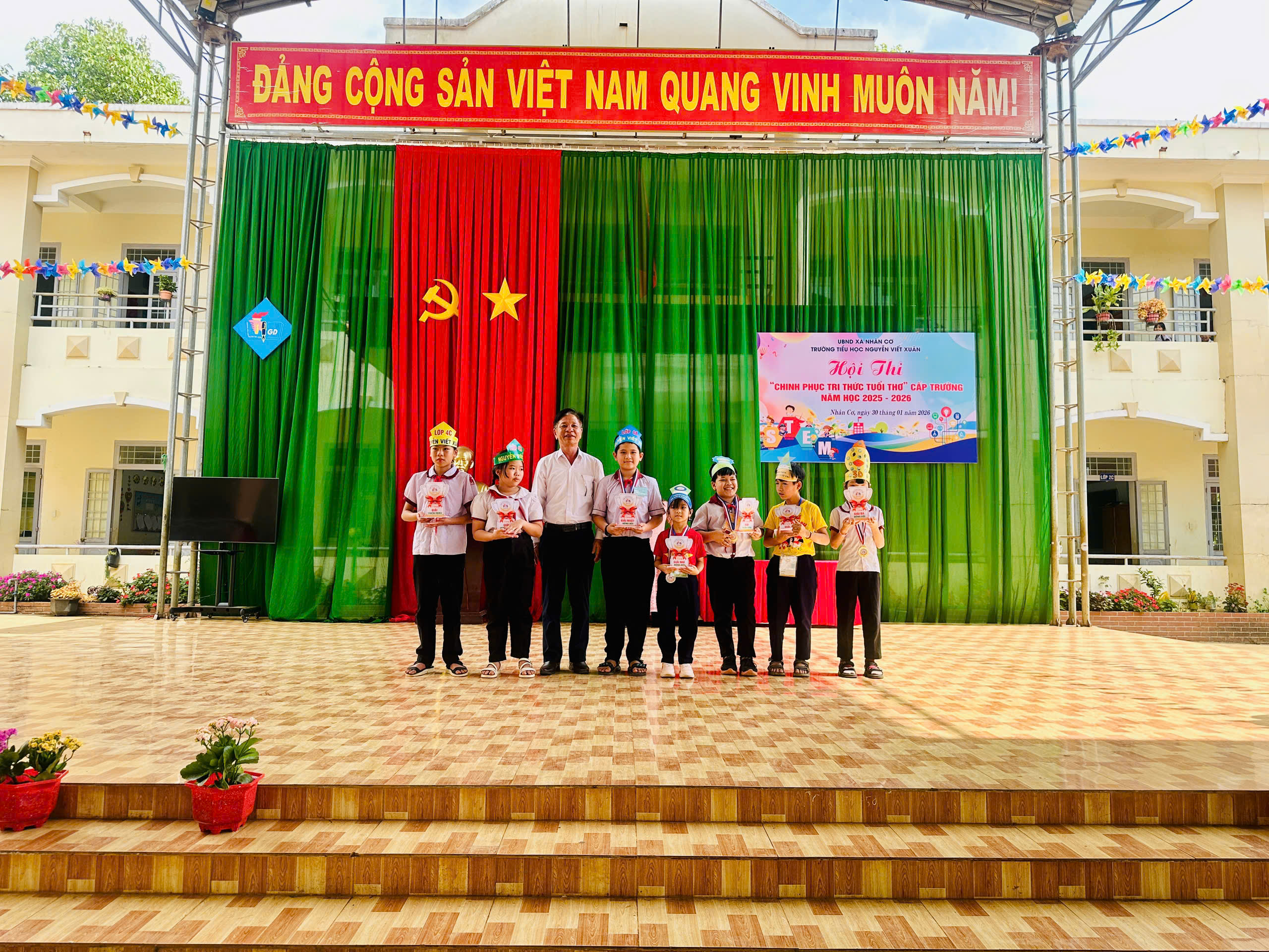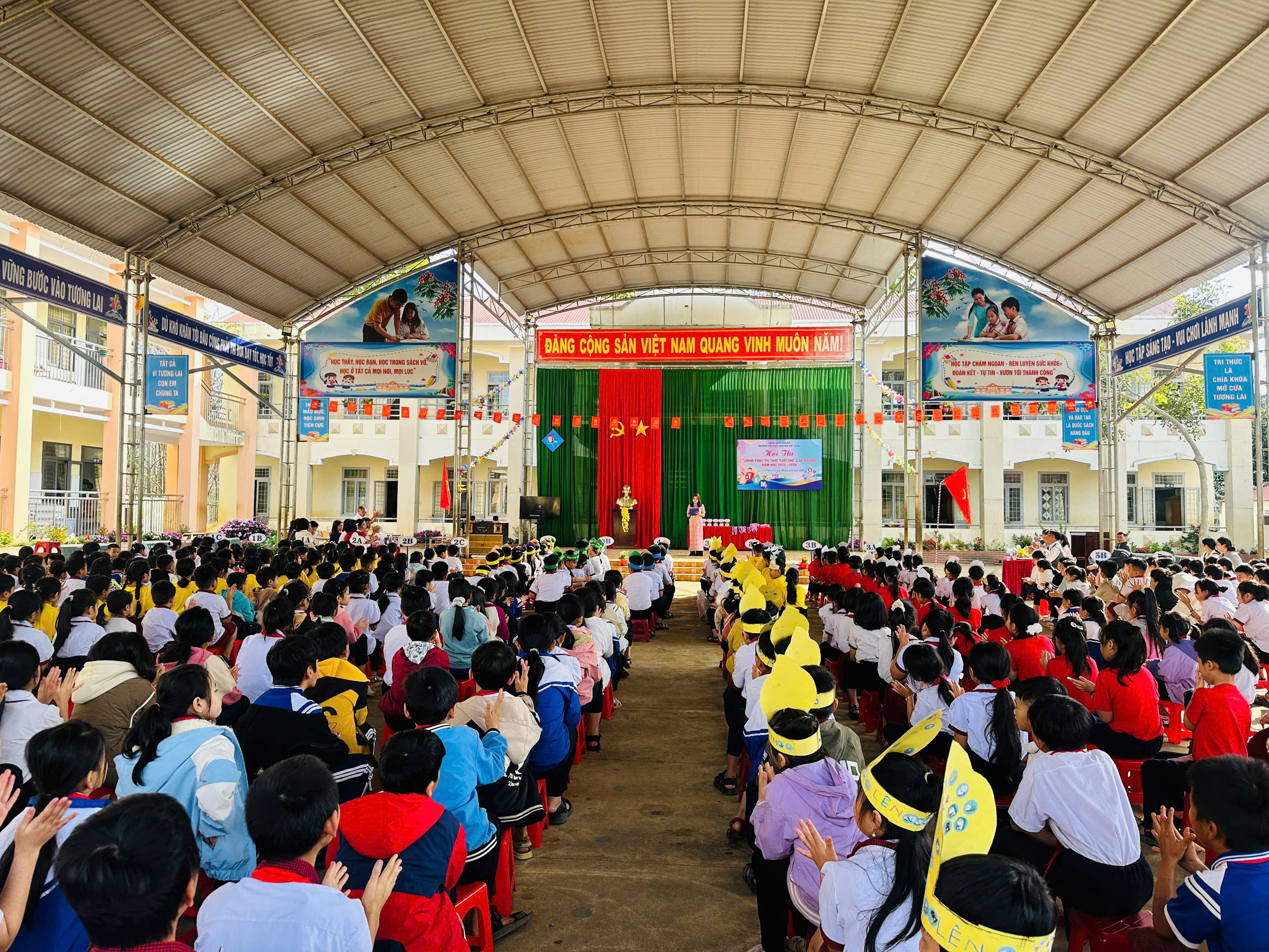Sáng ngày 30/01/2026, tại Trường Tiểu học Nguyễn Viết Xuân, xã Nhân Cơ, tỉnh Lâm Đồng, Hội thi “Chinh phục tri thức tuổi thơ” năm học 2025 – 2026 đã diễn ra trong không khí vui tươi, hào hứng và đầy trí tuệ. Hội thi thu hút sự quan tâm của giáo viên, phụ huynh và đặc biệt là sự tham gia nhiệt tình của các em học sinh.